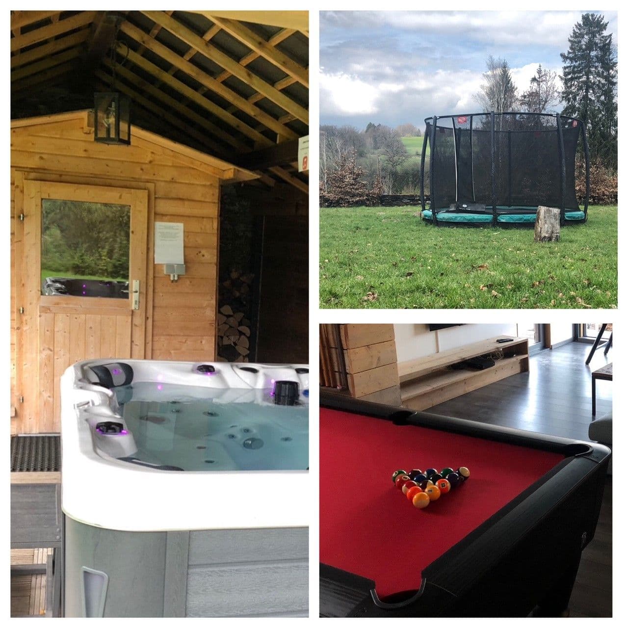 Relaxen in sauna en jacuzzi buiten in de tuin of alle remmen los op de trampoline.